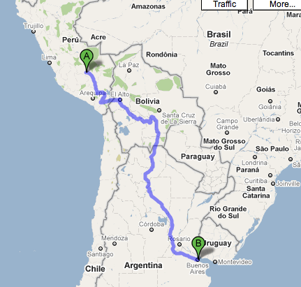 Buenos Aires to Machu Picchu : 2,653 miles. 88 days. Four months, to include rest and repair time.