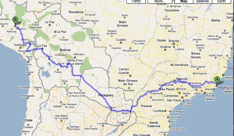 Rio De Janeiro to Machu Picchu : 3,438 miles. 114 days. 5 months, including rest and repair time.