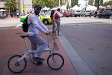 Mr. Breakpoint poses with the folding bike. He rode with me on Bart from San Francisco to Oakland.