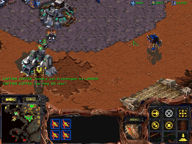 | A conga-line of Zerglings meets the Three Billy Goats Gruff. |