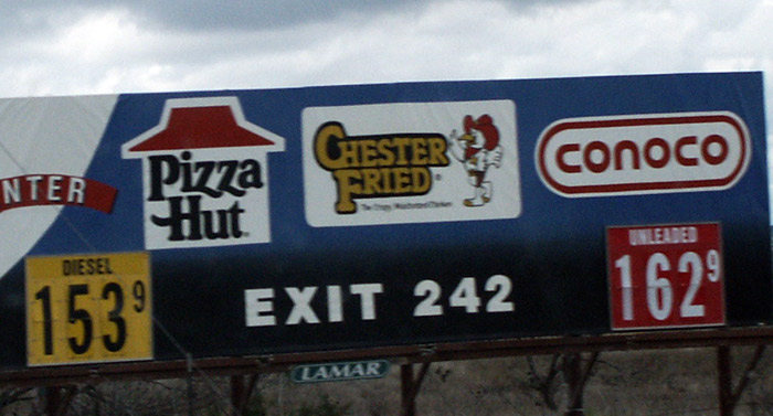 Get yourself some Chester Fried chicken! Also, note the difference in gas prices.