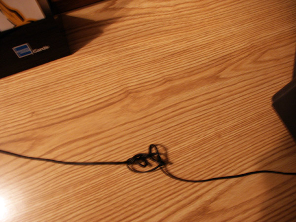 This always happens. A perfectly straight cord comes out of the suitcase with one bizarre knot right in the center. Must be goblins.