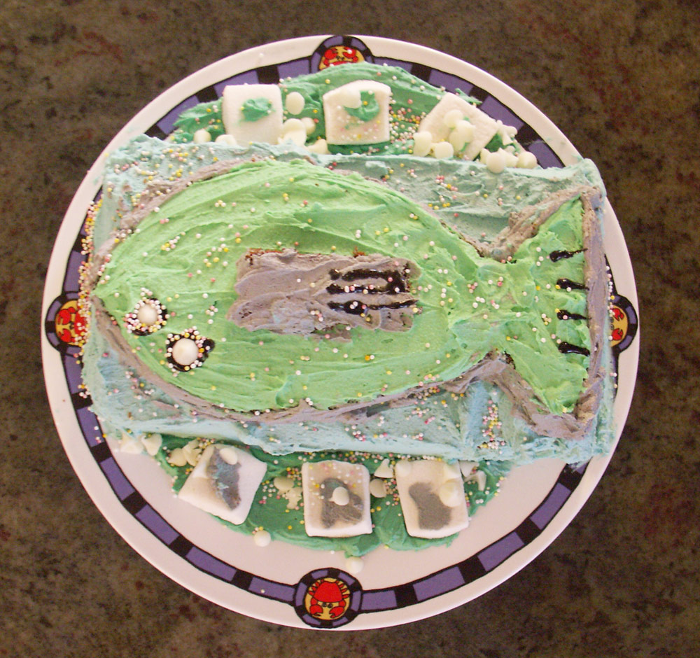 The flounder birthday cake Sherrila made, to celebrate her and Kashy's birthdays. We finally cut into it this evening. Mmmm!