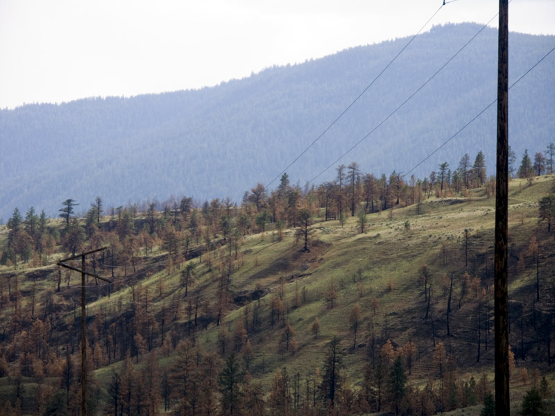 Sick and dying trees on the hillside. We're not sure what's killed so many of them.