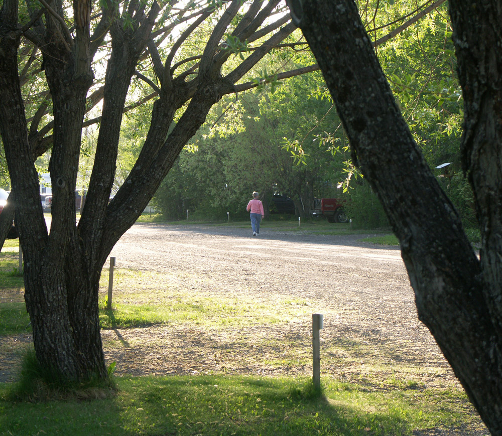 Margaret goes for a walk in the Sintich RV park near Prince George.