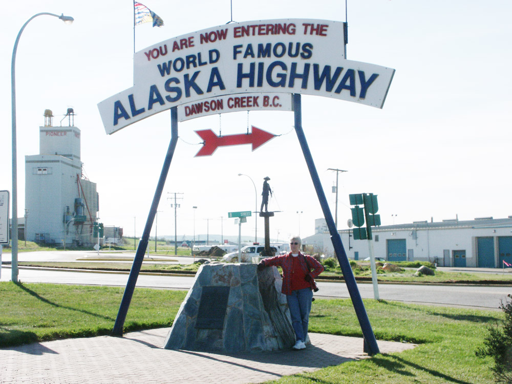 Margaret poses by the highway sign. Now our vacation road trip to the beginning of the vacation road trip to the vacation is over, and our vacation road trip to the vacation begins!