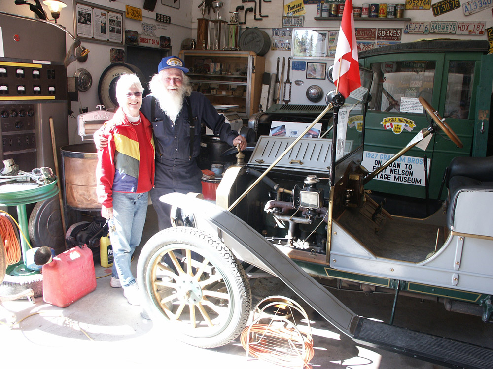 Margaret with Martin, the auto artist of Fort Nelson. He had personally restored, to operating condition, hundreds of cars that he found or took in trade.