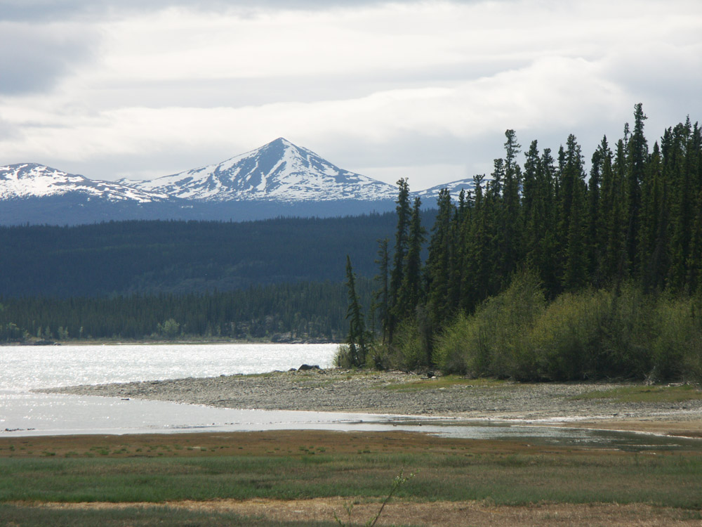 So I'm out here in the middle of a bog, standing with waterlogged feet on ground like a soggy matress, snapping a photo of the lakeshore.About 15 seconds after I took this picture, a wolf-shaped creature sprang out of the bushes on the right, attempting to get the chomp on a group of hapless black ravens. The birds all scattered towards me, then up and back to the trees, evading the creature, who turned right and galloped along the shoreline you see here.