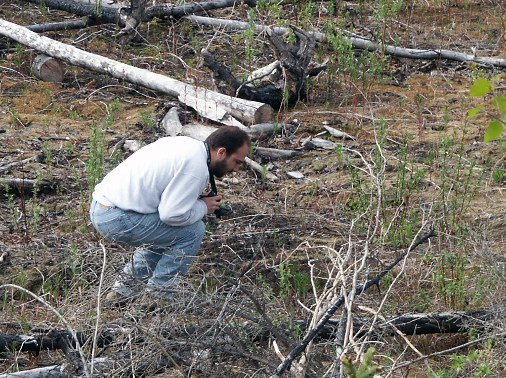 Discovering another Yeti footprint? Or some interesting weedy bits for a close-up shot? Or maybe he's just winded?