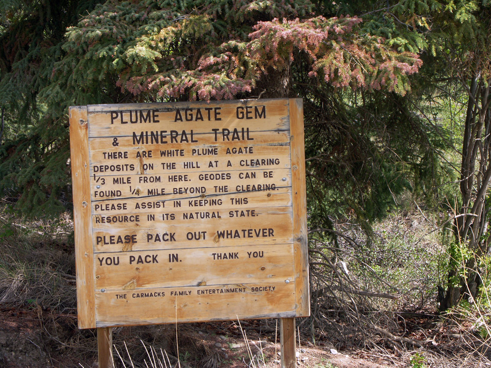 We didn't find any good agates ... only a few meager, cloudy ones stripped out by the river. I suspect that, a few years ago, some enterprising landscaper blundered up this trail with a dumptruck and shoveled in all the rock he could carry. Probably more than once. That would certainly explain the piles of heaped earth we trudged around on our way to the river.On the other hand, a more likely explanation is that prospectors with gold fever came up the trail and washed out the hillside with hydraulic mining, then abandoned the area.