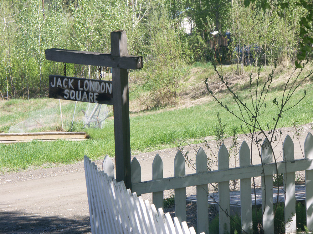 Here is where part of the original cabin is located. After it was authenticated, by finding a name signed on the wall by Jack London, the cabin was split up with some of it shipped to Oakland, Calif.