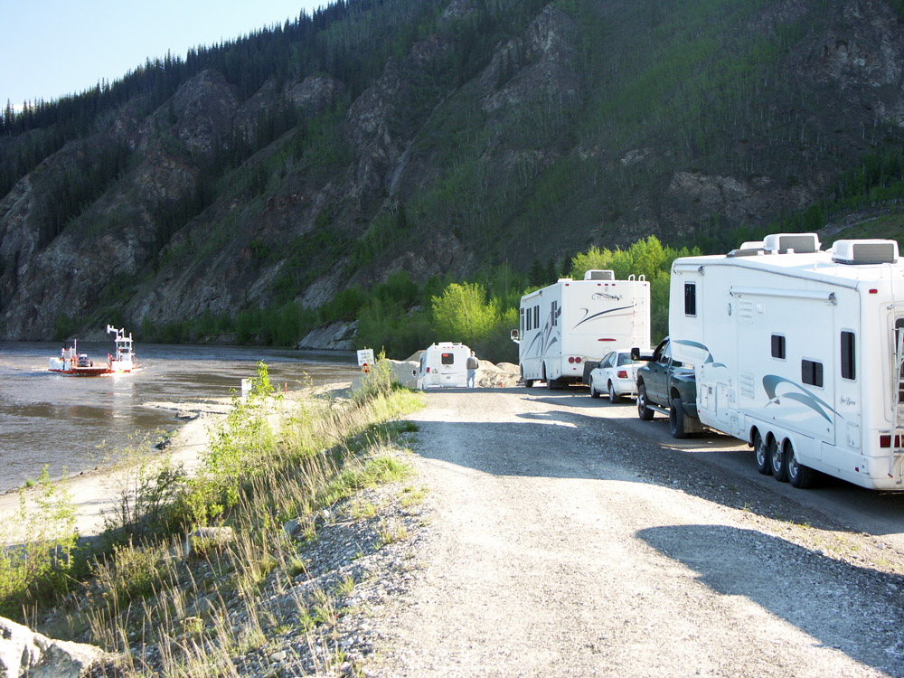 Waiting in line for the ferry. A caravan from 'Alaska RV Tours Inc' monopolized the transport for quite a while.