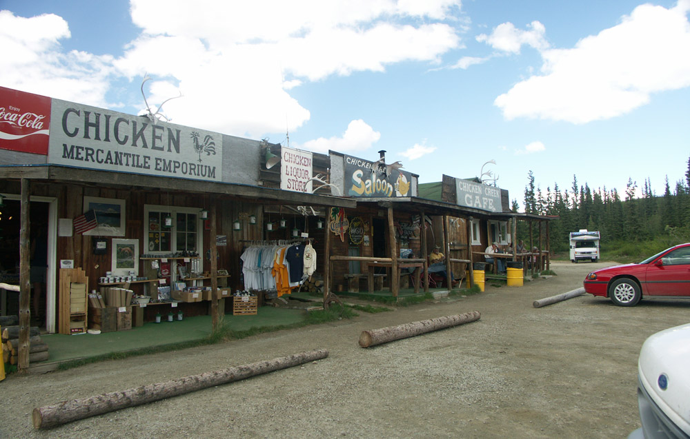 Oh yes, it's a real town. You thought I was joking? Over a hundred years ago, the locals wanted to name the town after an indigenous bird, the Ptarmigan, but nobody knew how to spell it. So they gave up and called the town Chicken instead.