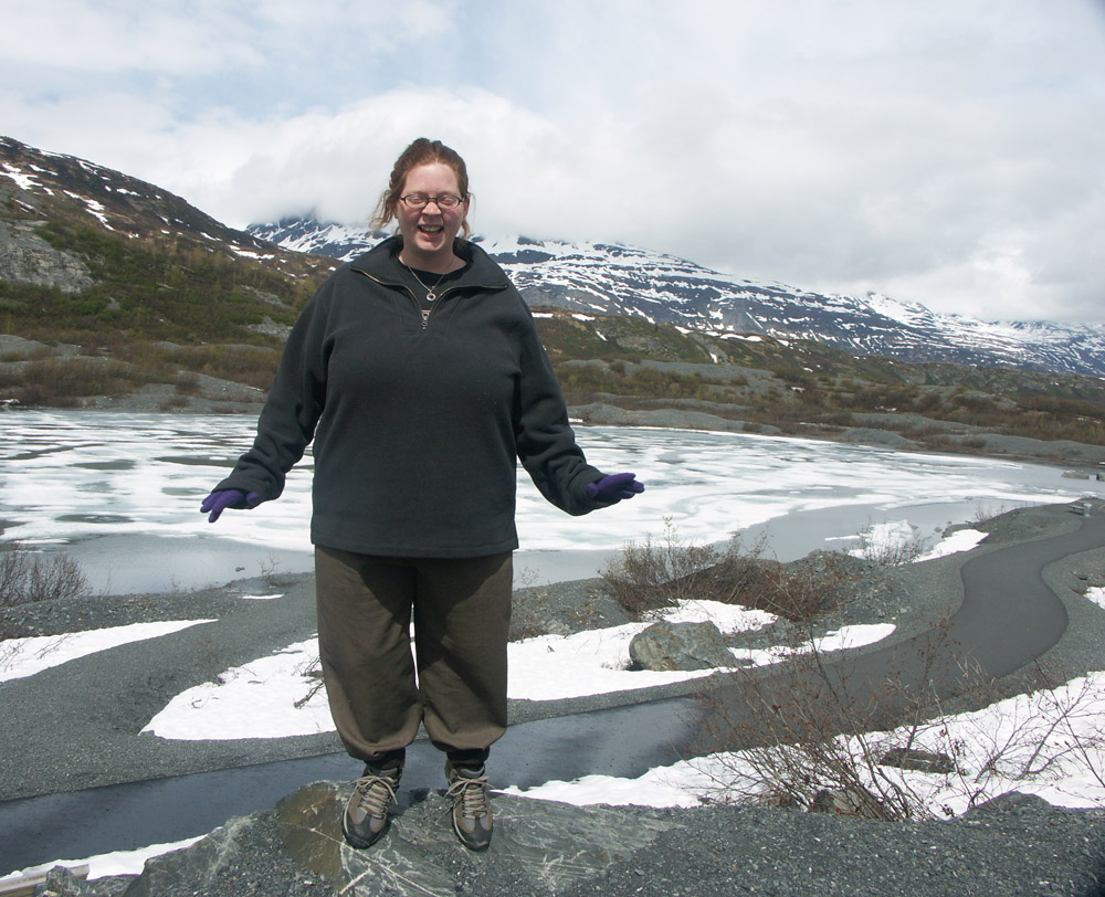 She looks like a little penguin, with her pants stuffed into her socks! Awww!