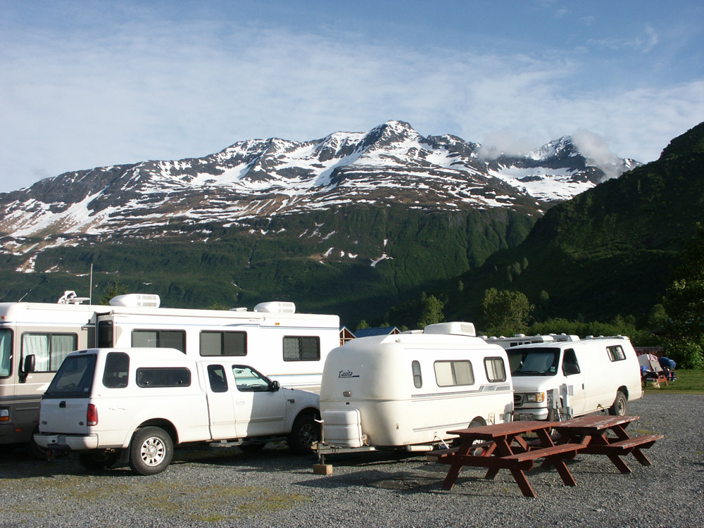 The view from our setup at the Eagles Rest RV Park in Valdez.