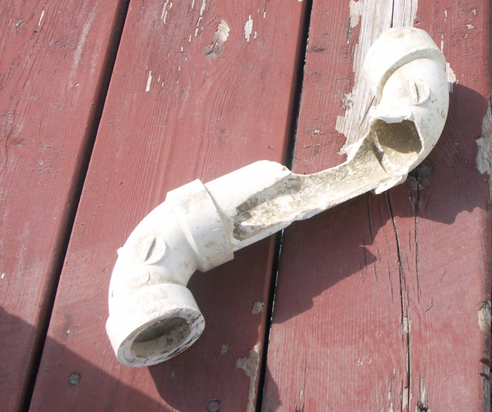 A section of pipe from the bottom of the trailer, that got smashed by the terrible roads at the Alaskan border.