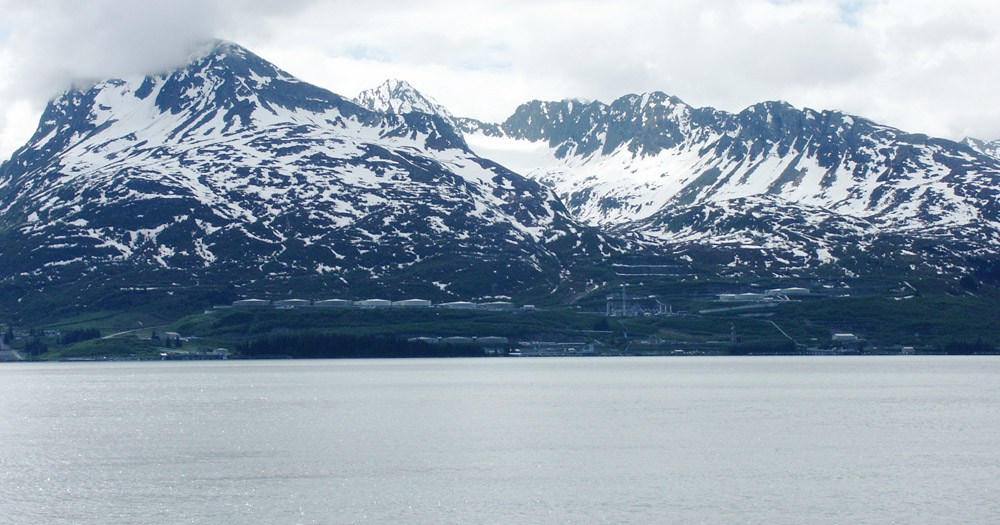 The refinery and pump station that end the Alaskan oil pipeline. From here the oil is loaded onto tankers.