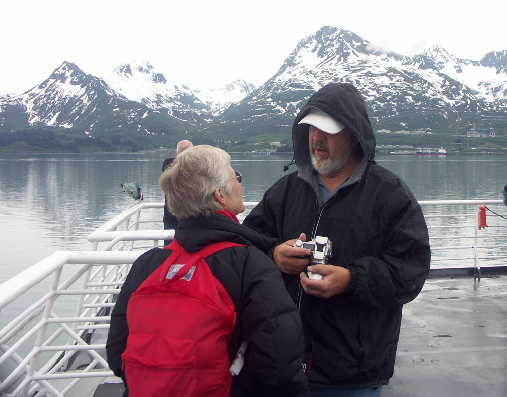 Jedi Ben tells Margaret, "Okay, time for your wake shot." It's his tradition to take a picture of her standing at the rear of the boat, with the water churning beyond.