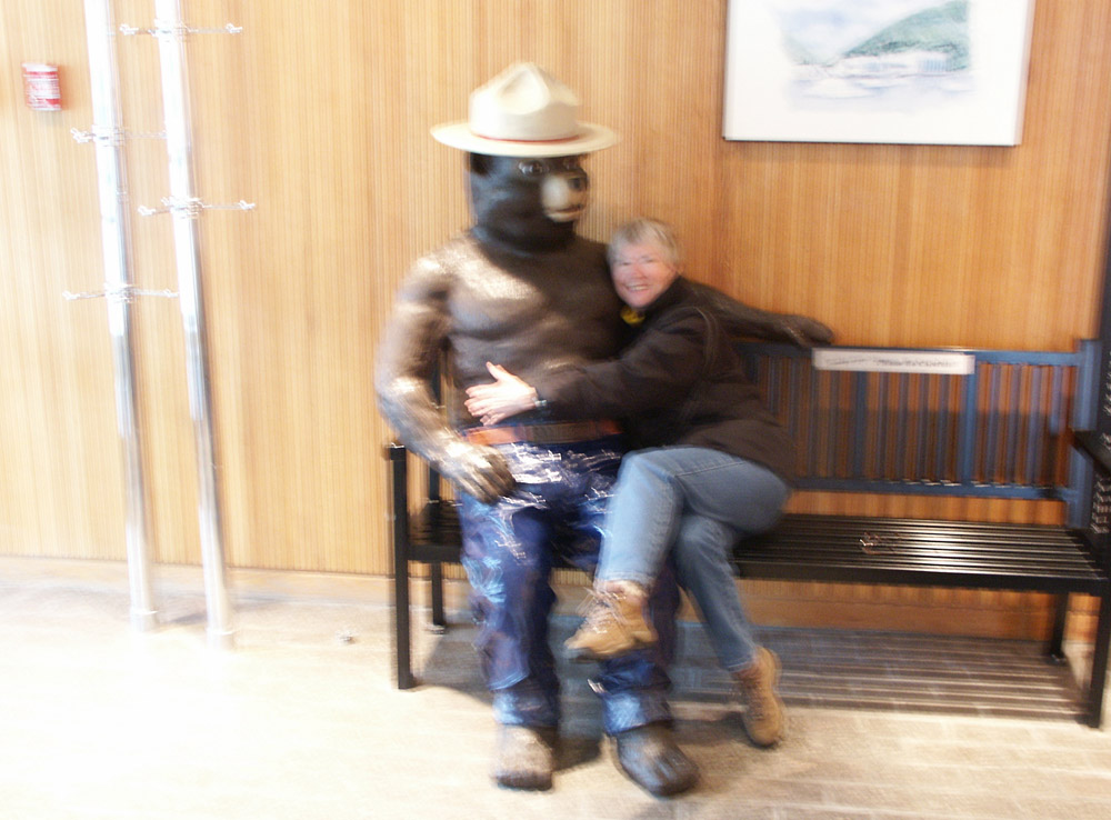 Margaret and Smokey go way back. Taken in the Portage Visitor Center where we got directions to our RV park.