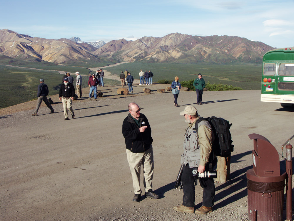 Even though we had just seen the bear, the man on the right (a professional photographer) got off the bus here to walk off the road.