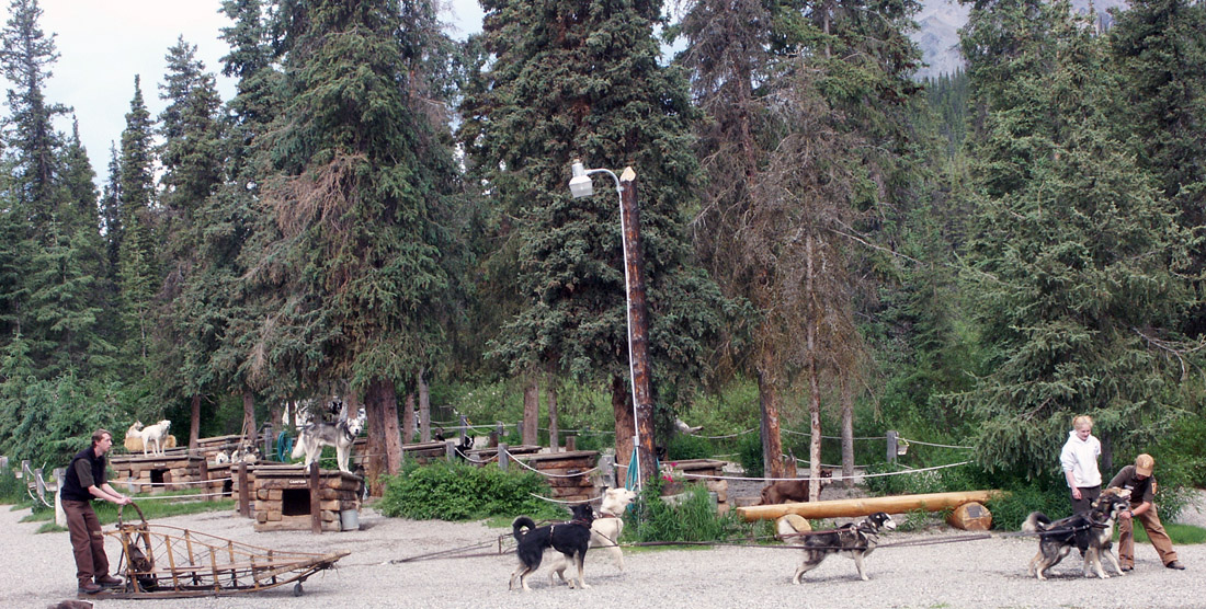 The dogs enthusiastically get ready for a practice run for the tourists.