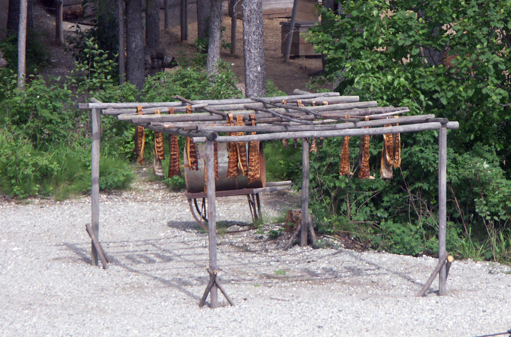 Salmon filets drying in the sun.