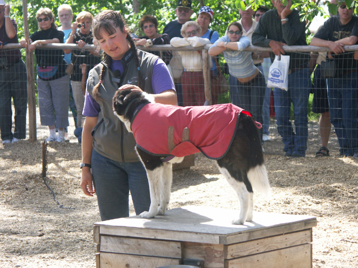 Susan showing off one of her favorite lead-dogs, which he seemed to thoroughly enjoy. These dogs all craved any attention you could give them.