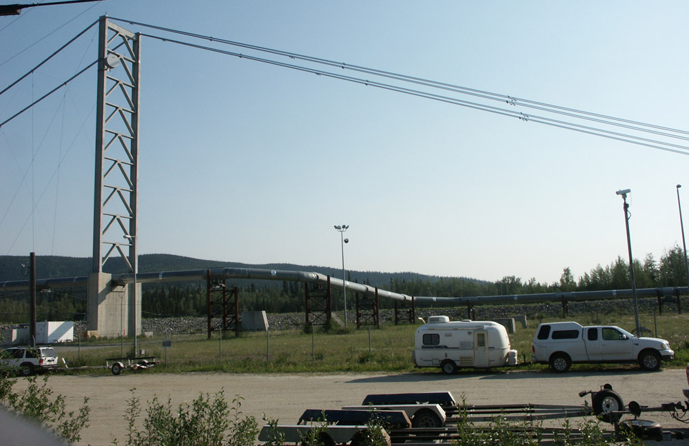 Ben and Margaret stop to see the bridge that forms part of the Alaskan Oil Pipeline