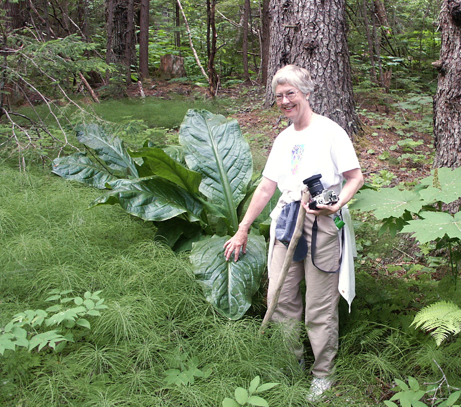 A big-leaf plant (Skunk Cabbage).
