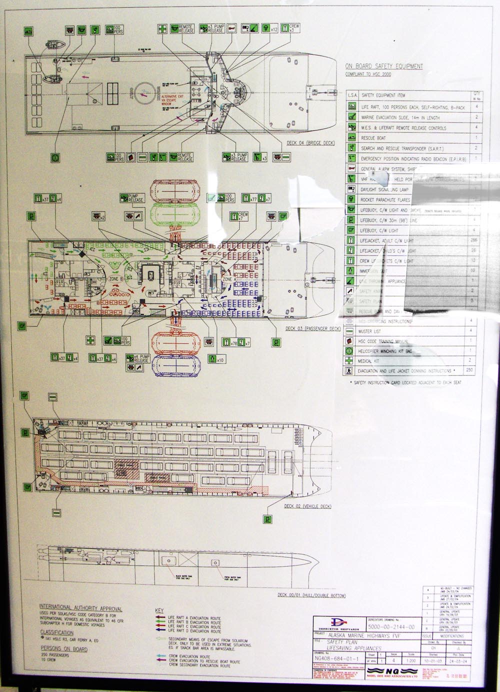 Here's a plan of the ship, posted in the passenger area. I apologize for the awful quality of the photograph.