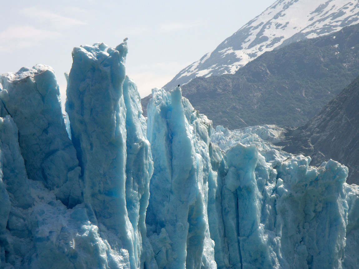 That tiny speck at the top of the giant ice column is a bald eagle. Whoo!