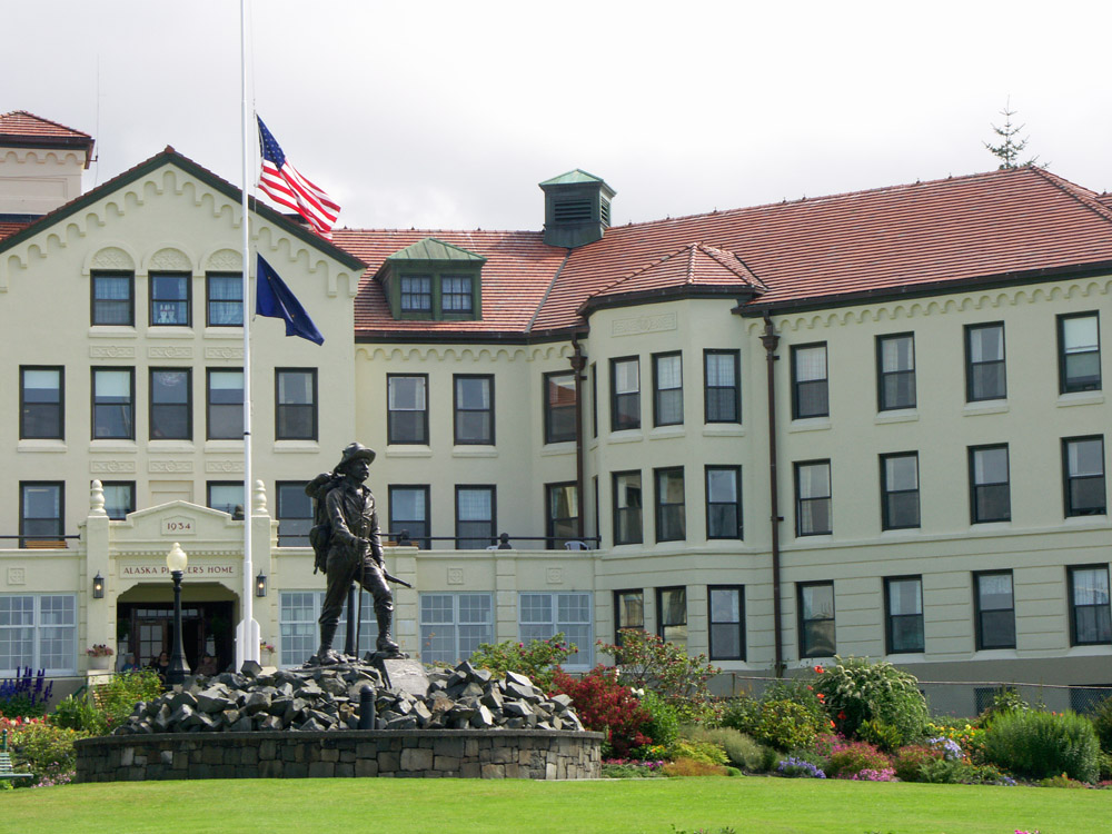 Here's a closer look at the building. The flag is flying at half-mast to commemorate the death of President Reagan.