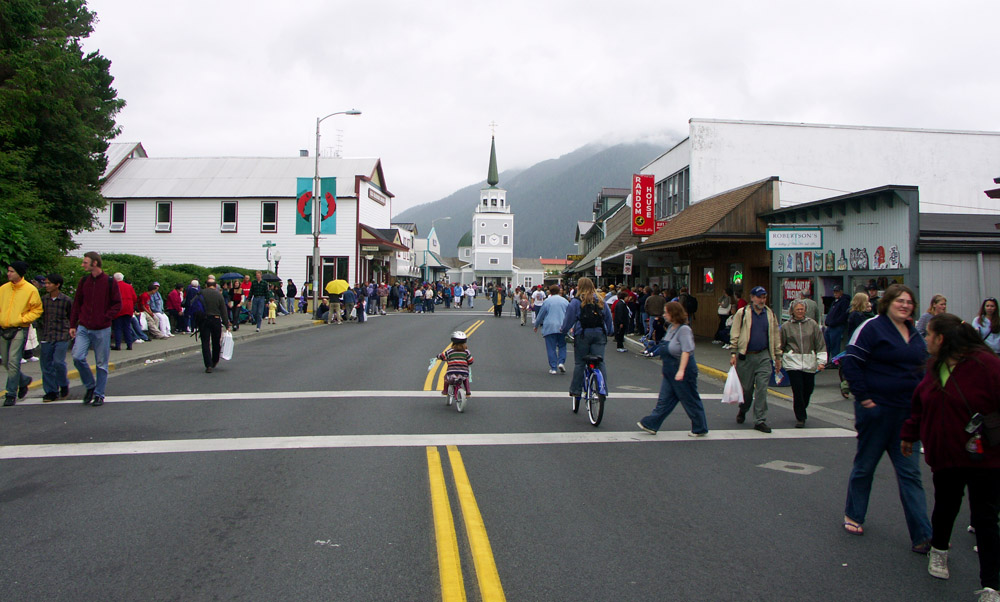 There aren't usually this many people downtown, but today a parade will be passing through here.