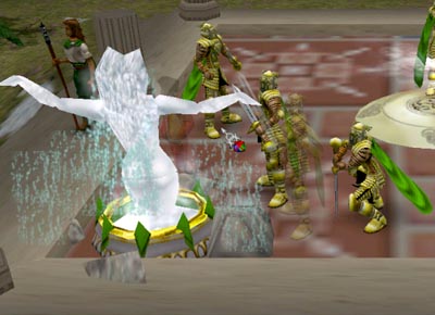 Fanservice is everywhere in modern media. Movies, television, magazines, games. People just like looking at girlies. Here we have a bit of landscape from an Elven palace. When you're out chasing some wacky Chancellor across the courtyard, you may just rush right by this without a glance. That would be a shame, however, because in this game, the gratituous female statuary is above average. Some artist did good work here.