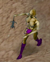 When you've got your opponent near death, he gets to make a speech. This means that all action freezes. All the characters stand still. Even the dragons freeze in the process of coughing up their next fireball. The camera swings down to face the character, and his voice rolls out from the stereo. Everyone waits patiently until he's done.