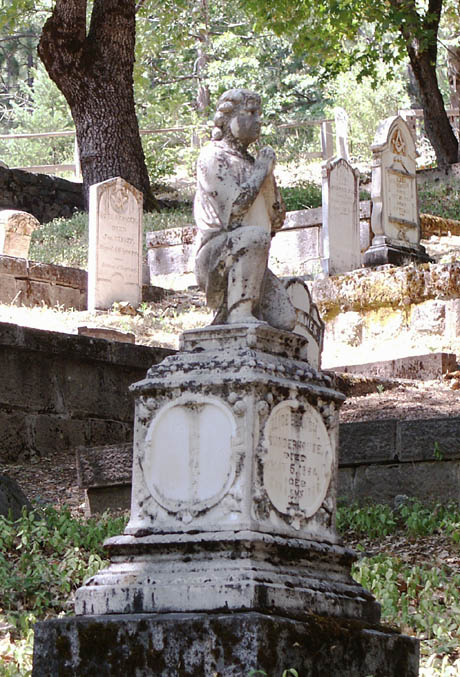 As I snap pictures here and there, I am surprised to discover some very large, elaborate headstones for children under one year of age, ... sometimes right next to humble, nondescript plots for people who lived into their 70's and 80's. All I can think of to explain the disparity is that distraught parents were trying to give their children the glory in the afterlife that they could not survive to find in life. Or, perhaps a big headstone just means a rich family, eh? I check almost every inscription, but the cute poetry about the 'Jones boys' is nowhere to be found.