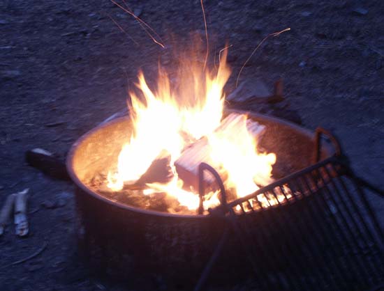 We cook pasta on the stove, and Torrey unwraps the rest of a tabouli salad. For dessert we lounge around immolating marshmallows and devouring their crispy hides, then Zeugma reads aloud from a very interesting book about the history of the science of chemistry ... Interesting as much for it's uncommon subject matter as for the detailed quality of the writing.