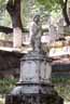 About a hundred feet up this road, wrought iron fence appears uphill on the right, running along a cement retaining wall. Steps built into the wall indicate the entrance to the graveyard. There is no parking of any kind, but farther along is an open space where three driveways branch off, just large enough to park a single car for a while without disturbing anyone. I display my camera prominently on my side, hoping to make my intentions clear before anyone complains about my parking. No one is around, however.