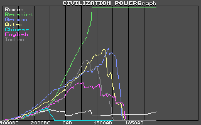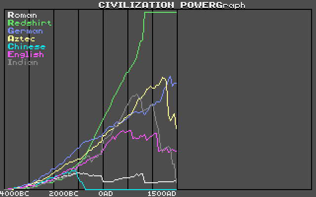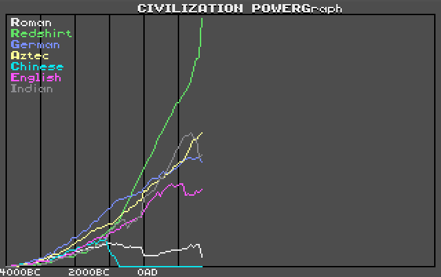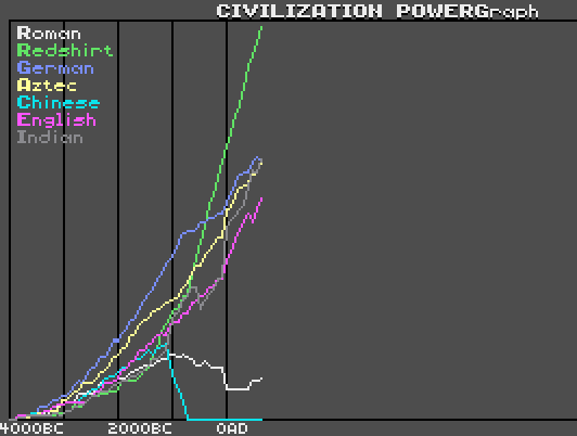 Did I say booming? It's more like a nuclear blast. My spot on the "power graph" was so damn high that the game just gave up scaling it for about the last 800 years.
