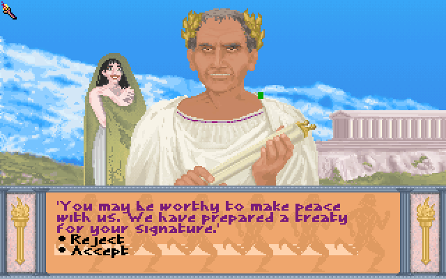 I responded by bribing half their army as it approached, and bombing the other half when it got to my city walls. Frederick was in a spitting rage, and I refused to grant an audience, because I knew he would be forced to offer a treaty, and I would be forced to sign it by my own senate, and we'd have peace for about three turns before he crashed his government into anarchy and pounced on my approaching diplomats. At least this way I could counterattack him if I felt like it.