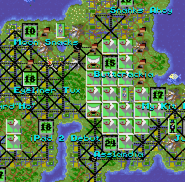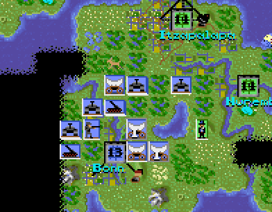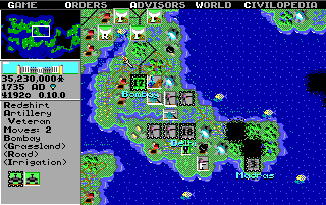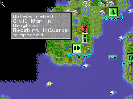 They both hated me more than they hated each other, and for about fifty years I struggled to gain a foothold on the island while fending off dozens of military units from both sides. My standard tactic was to bribe their units as they approached, then sneak them back behind my city walls and pretend they were mine all along.