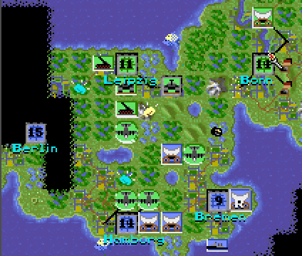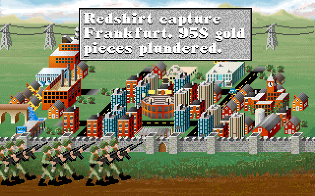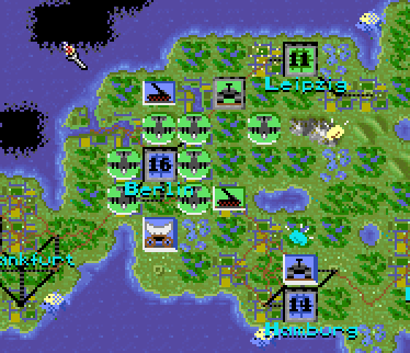 I blasted ten military units out of the city of Leipzig and jumped into it, while stomping on everything that Hamburg and Bremen produced. The Germans tried to nuke Leipzig, so I repeatedly restored the game, slapping Frederick across the face until he tried something else. I would not allow him to kill civilians - even his own.