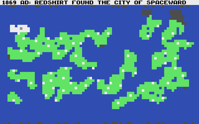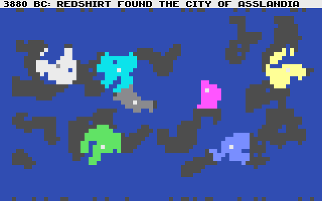 From that point on, all the cities I founded were left defenseless. I didn't even build a militia to turn away barbarian raiders. After only 500 years, every corner of the island was under Redshirt control and development. There were six other civilizations out there, but they were all competing with each other for now.