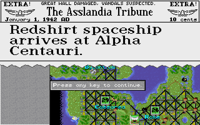 Asslandia! That wonderful city of all cities now had a population of 2.1 million and growing fast. Caravans were still stacking up outside it to build the latest wonder, but the list of available wonders to build was growing short. In fact there were only three or four left in the technology tree. In 1540 my current project was the Cure For Cancer.