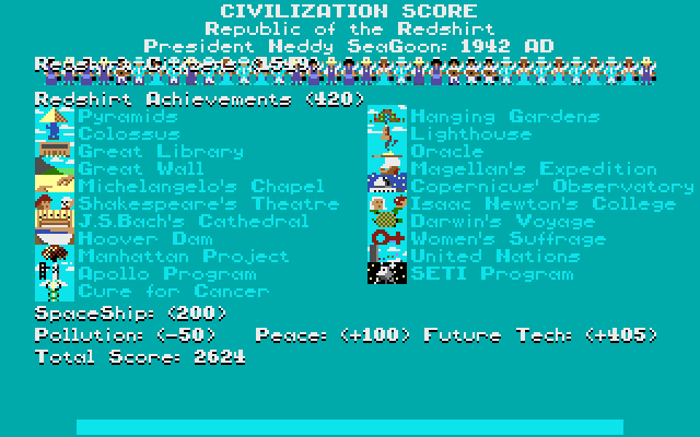 In my last great Civilization campaign I played as Emperor Cat Food, leading the civilization of the "40ft Fritos". This time I chose the venerable name of Neddy SeaGoon, and decided to lead the Civilization of the "Redshirts".