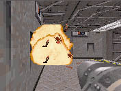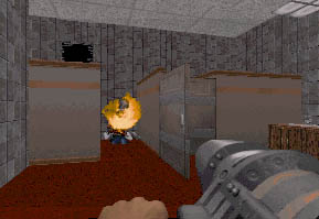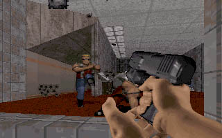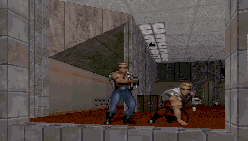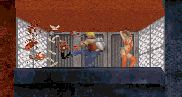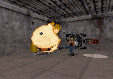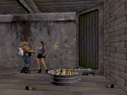 ![]() Here's a shot of Brent and I playing the first level. That's Brent there on the left, with the sloping criminal forehead. | |