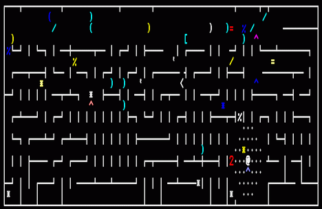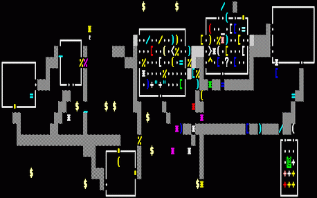 Because the game does not actively ply you with environmental cues, it appears to have a curious lack of substance. But it's not really substance that sets Nethack apart; it's the way the game leverages that lack of substance. The interface is bizarrely minimalist. Nethack has no movies, no sound, and no pictures. It's just colored text and symbols, and most of the time the symbols don't even resemble what they represent. To the newcomer, it's hard to even recognize as a game. It looks more like the guts of an old typewriter creeping around on the screen.