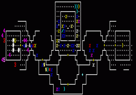 The first floor down from Medusa was the underground castle. Somewhere in that castle was a guaranteed wand of wishing - an item really worth fighting for. Between it and me was a tidal wave of angry monsters. With my towel on, I could see them all behind the walls, sloshing around, anxious to reach me. I could walk around and take the back way in, or choose the direct approach and lower the drawbridge. I chose the direct approach.