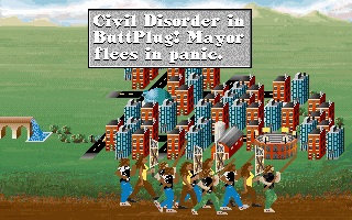 Couple turns later and they'd been ousted from their capital city. Cleaning up the remains was an ongoing process. At the same time demographics showed typical family size at 4.5 children. My happy little townsfolk were breeding like nobody's business. They probably couldn't read the instructions on the condoms or something, 'cause literacy rate was around %15. That's okay though, I breed 'em to build chariots, not do research!