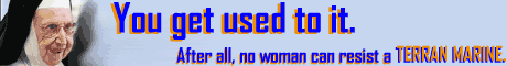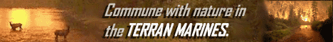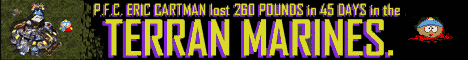 | This picture, like the ones that follow, is a "banner ad" that rotates around in the chat window of the Battle.Net server. We made a bunch of 'em to keep ourselves amused while waiting between games. The lab attendants disallowed all games, but we ignored the rule and showed up late at night to an empty lab, and took it over. We could have played on our home or dorm computers, but the face-to-face nature of the lab made the games ten times more fun. |